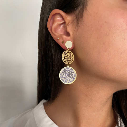 Pendiente Porcelana Azul Oro