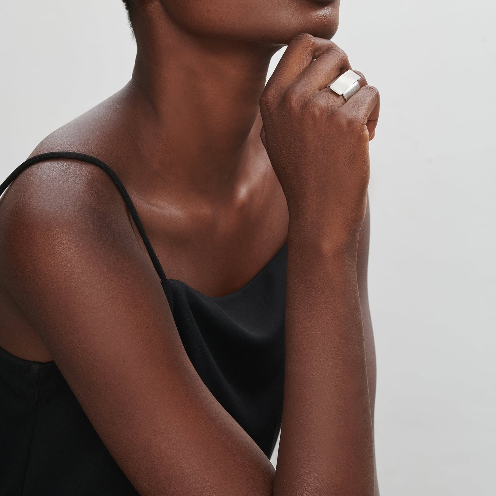 Un anillo con un toque excepcional, gracias a la sencilla placa metálica que protagoniza su diseño. Su suave curva da vida al brillo del metal y enriquece el aspecto. Una pieza elegante de gran flexibilidad estilística.
