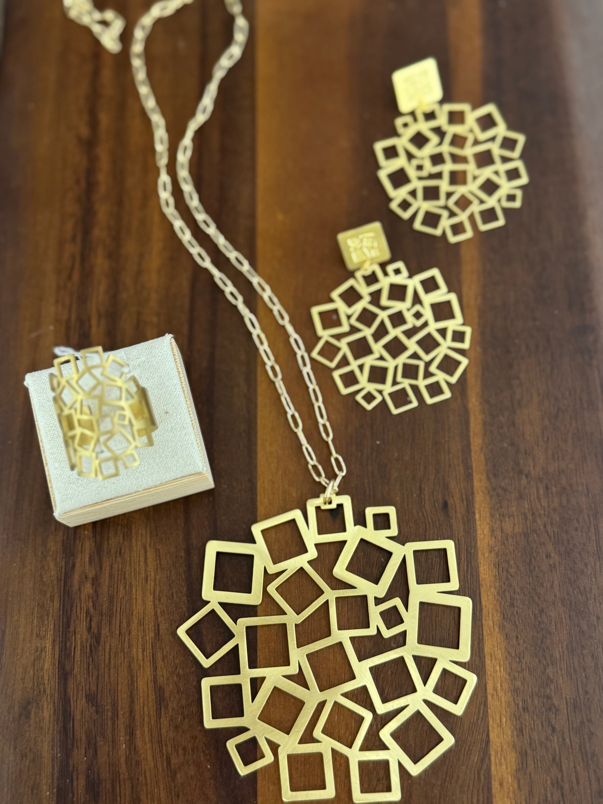 Colgante Largo Cuadrado al cuadrado baño Oro