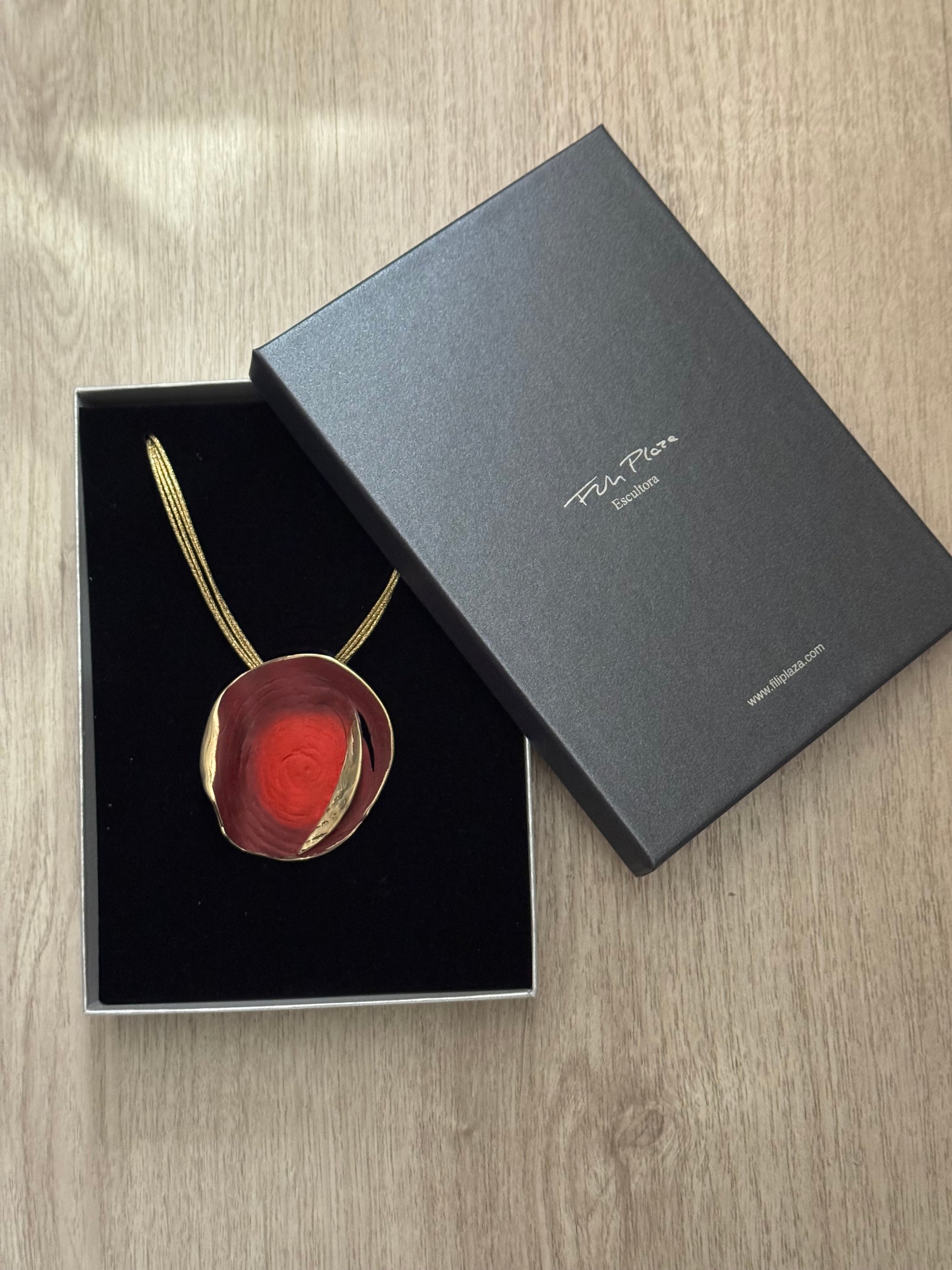 Colgante de Bronce con pigmentos rojizos.Estos colores son muy favorecedores para todo el año.